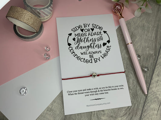 Mom Long distance moving away gift, wish bracelet , mother daughter red string friendship charm bracelet for mum from daughter