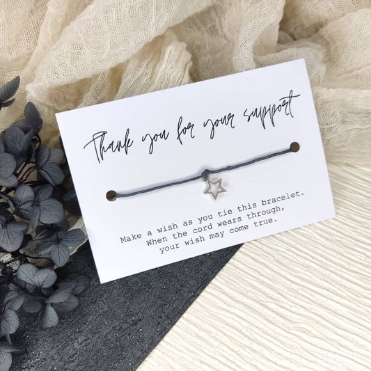 Thank you for your support, believing in me, Make A Wish Bracelet, gift for teacher, tutor, gift keepsake goody bag